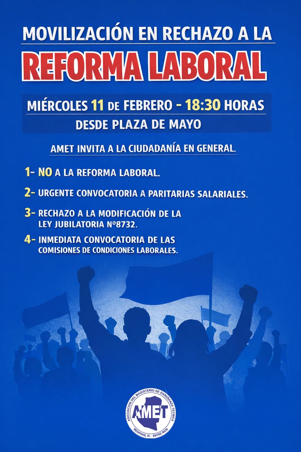 #AMET: Gremios docentes convocan a una movilización en rechazo a la reforma laboral