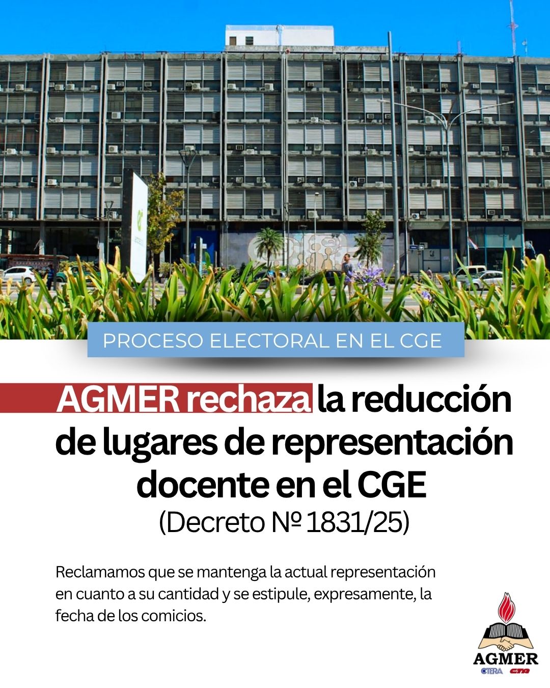 #AGMER rechaza la reducción de cargos de representación docente en el CGE y exige fecha de elecciones